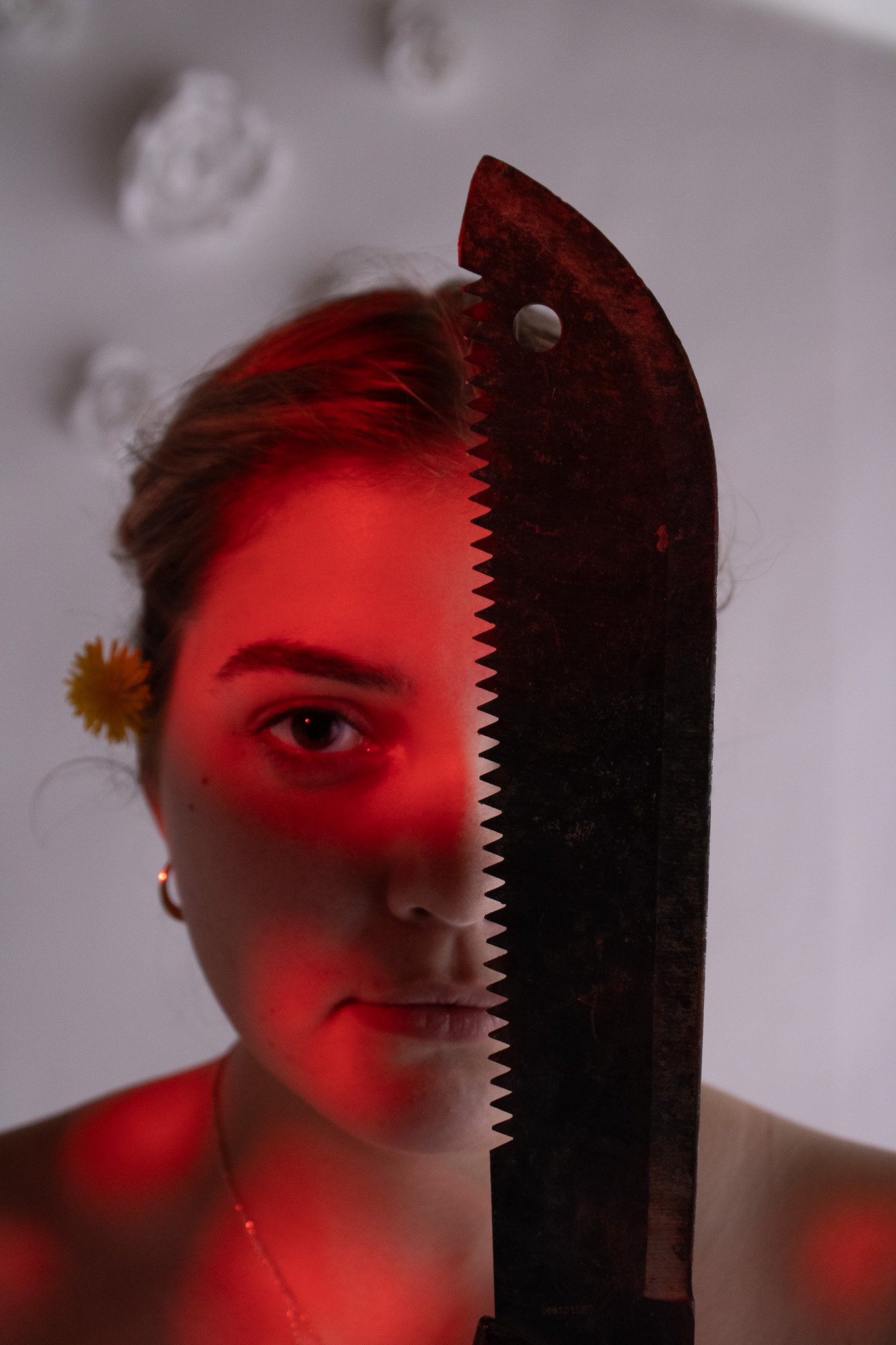 Using artificial light for this studio session was an intentional creative choice, designed to add depth and drama to the composition. The final image carries a sense of storytelling, with rich red tones and lowered exposure enhancing its intensity and emotional weight. Cropping the image heights the focus and evokes a more powerful, fierce energy.